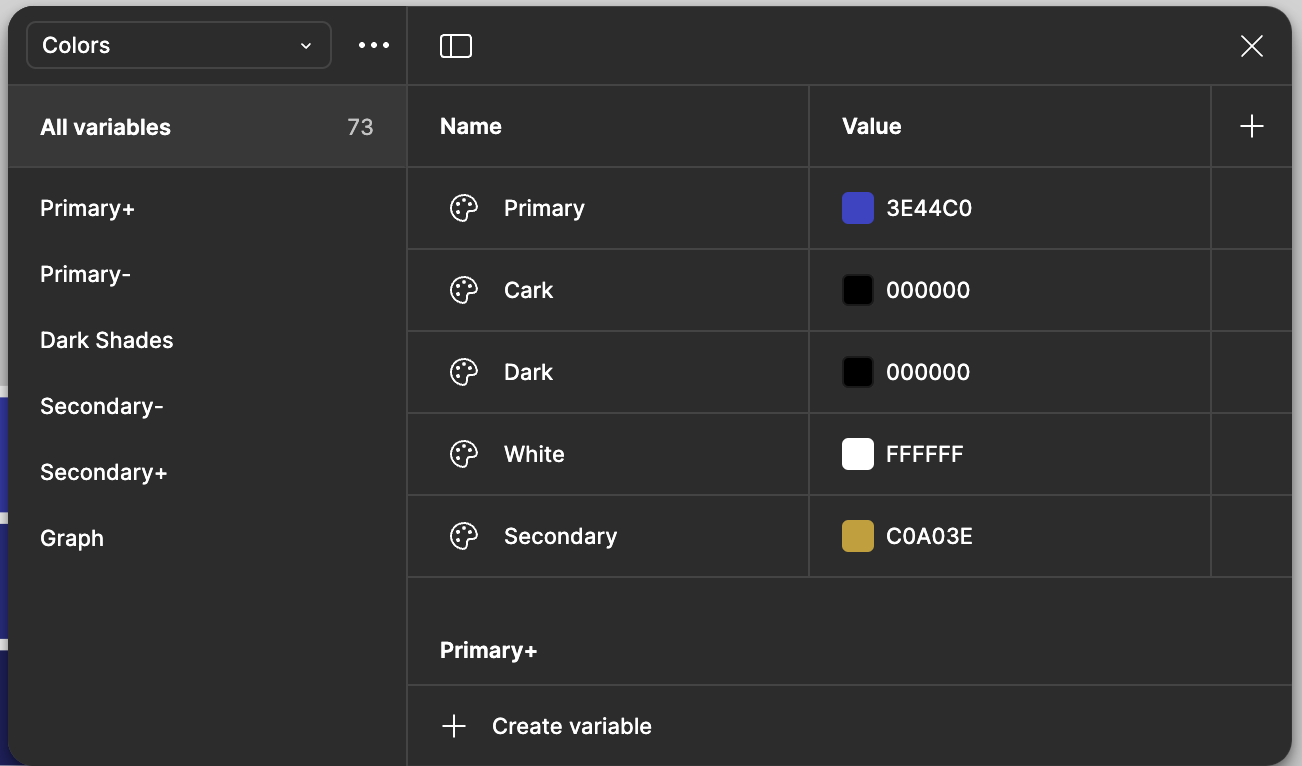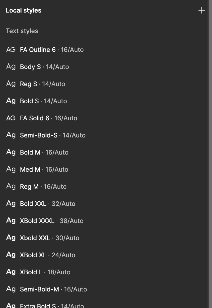 - Even though I’ve saved typography and colors, I create design tokens to make things more specific: